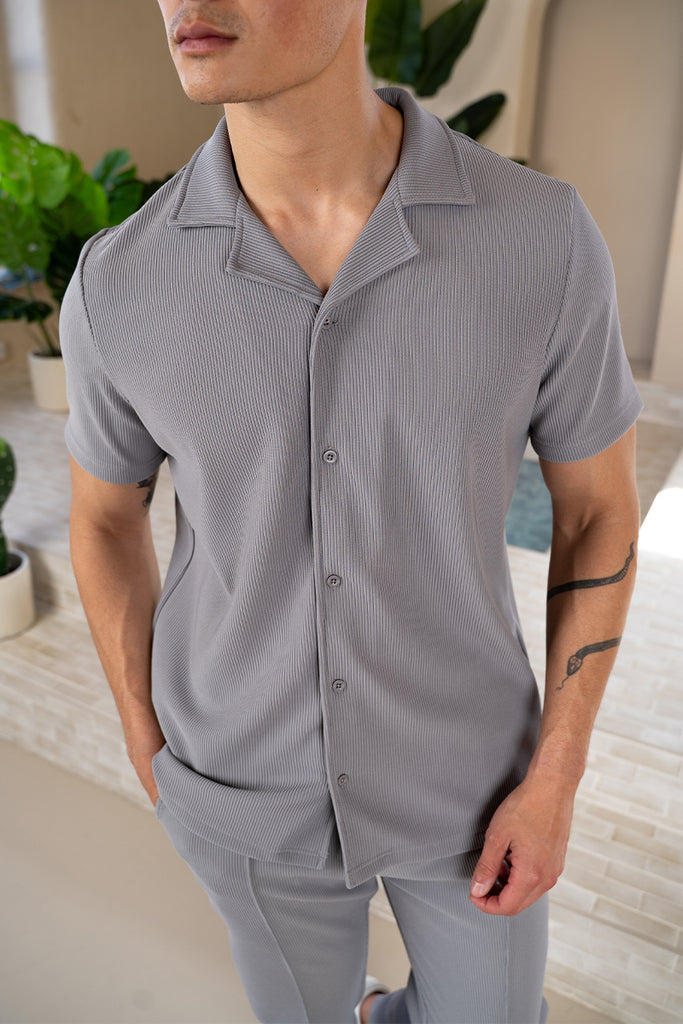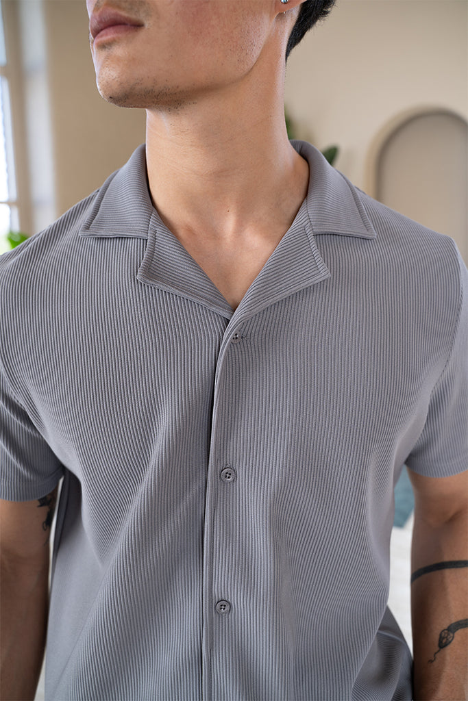 Pleated Slim Fit Shirt - Grey