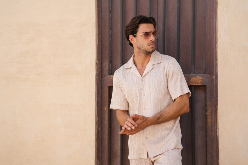 Ripple Texture Slim Fit Button Through Shirt - Taupe